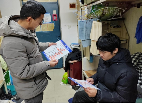 线下,辅导员老师、学生干部走进宿舍开展反诈微宣讲,结合近期高校学生受骗典型案例,细致讲解刷单返利、冒充客服、虚假贷款、游戏交易等高发诈骗类型的作案手法与防范技巧;同时,学院向每间宿舍发放反诈宣传页,督促宿舍长定期组织成员学习反诈知识,并及时上报可疑情况,夯实宿舍反诈安全防线。